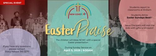 New Cove Kids is Sunday morning church for elementary-aged kids (9:30 AM).